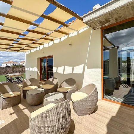 Iglesia de Nuestra Senora de las Angustiasから6kmくらいに位置するベッドルーム2室のChalet Con Vistas Del Guadiana Pov01 アヤモンテは、プールの眺めを望むテラスを提供しています。